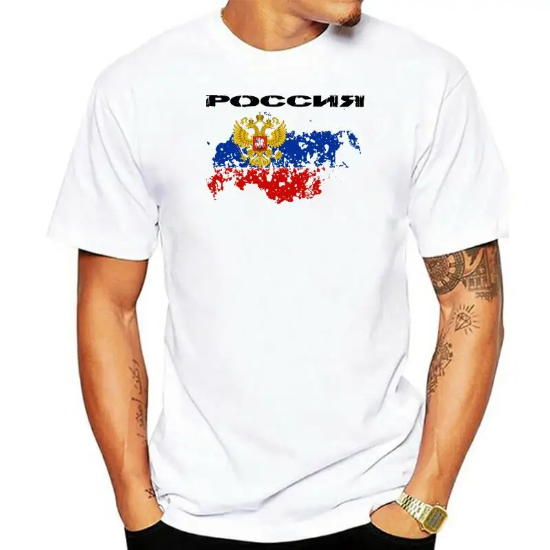 Мужская футболка с коротким рукавом, белая Повседневная футболка с принтом флага России, лето 2022