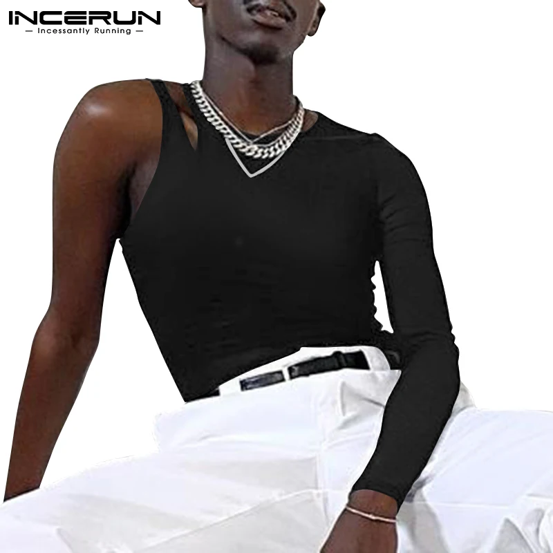 Мужская футболка с круглым вырезом, 2022, необычная, с длинным рукавом, однотонная уличная одежда, повседневные сексуальные футболки, мужские ...