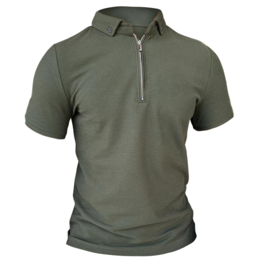 t-shirts,мужская футболка с полуоткрытыми лацканами на молнии в стиле ретро специальная тренировочная с коротким рукавом армейско-зеленая