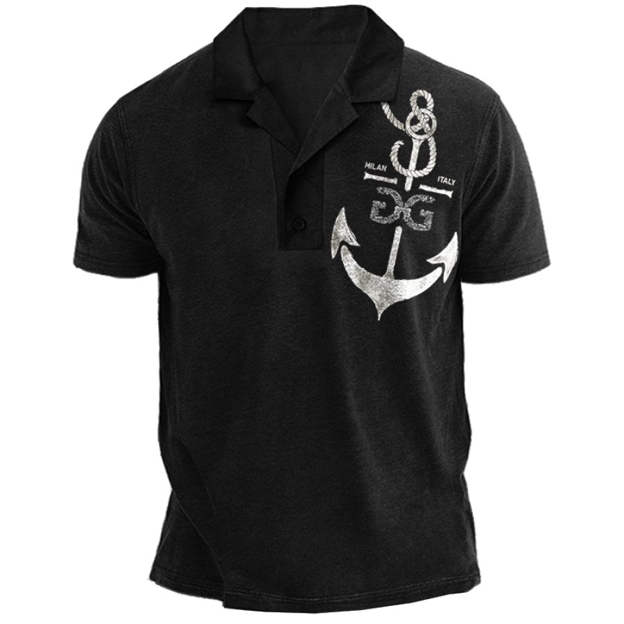 t-shirts,мужская футболка с принтом «якорь и компас» в стиле ретро с лацканами и воротником