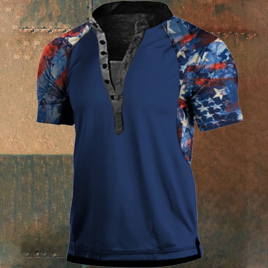 Мужская футболка с принтом американского флага и воротником-стойкой Henley