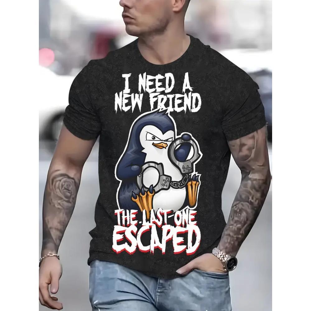 Мужская футболка с принтом Crazy Penguin, повседневная футболка с коротким рукавом, свитер с круглым вырезом, забавная футболка с изображением животных, уличная одежда большого размера 5XL