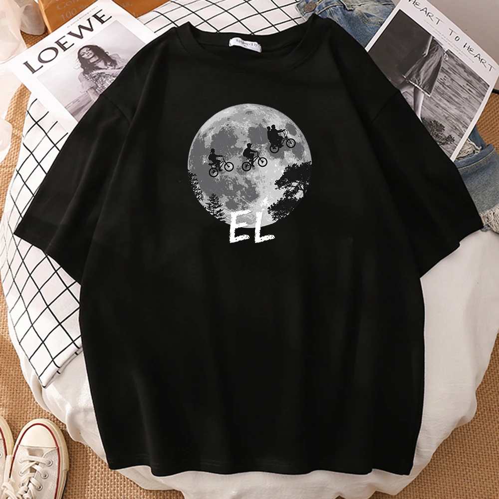 Мужская футболка с принтом El The очень странные вещи путешествия на Луне на велосипеде, хипстерская футболка с круглым вырезом, удобная летня...