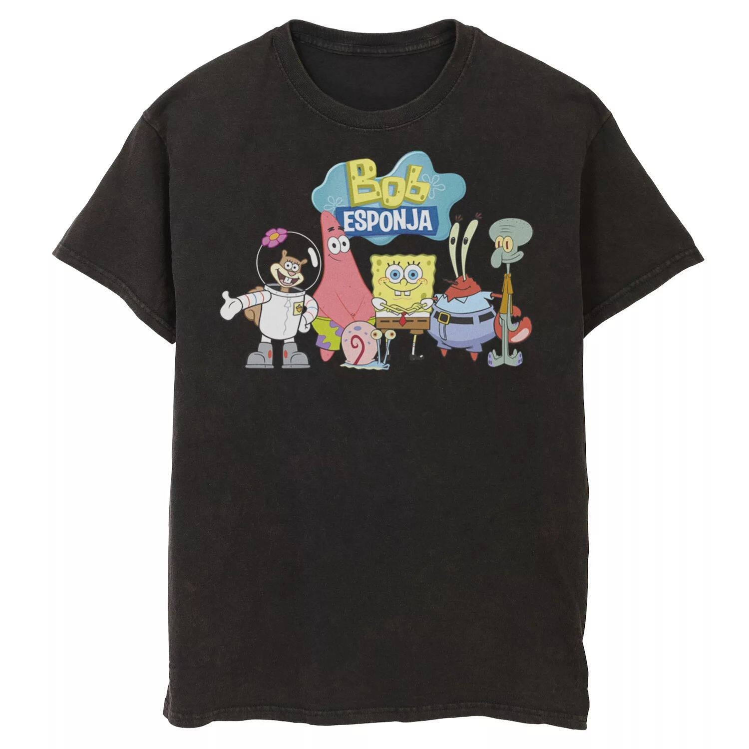 Мужская футболка с рисунком Губка Боб Квадратные Штаны Bob Esponja Happy Group Shot Nickelodeon, черный