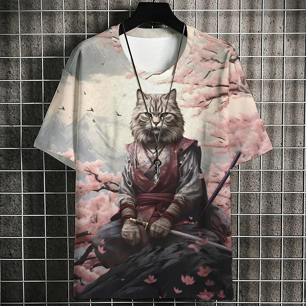 Мужская футболка с рисунком кота в японском стиле, футболки с принтом кота укиё-э, повседневная свободная футболка с короткими рукавами, большие мужские костюмы, топы 4XL