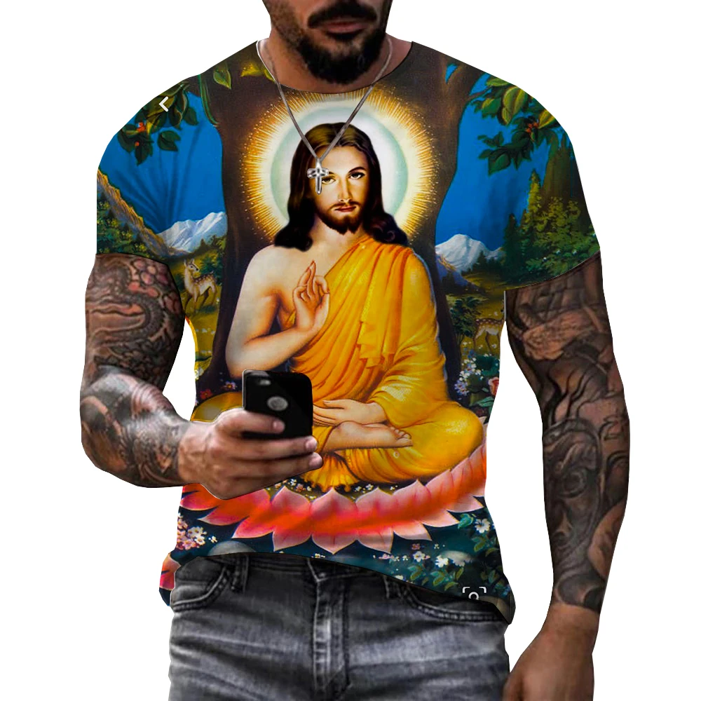 Мужская футболка с 3D принтом Бога Иисуса, модные футболки унисекс, повседневные футболки большого размера