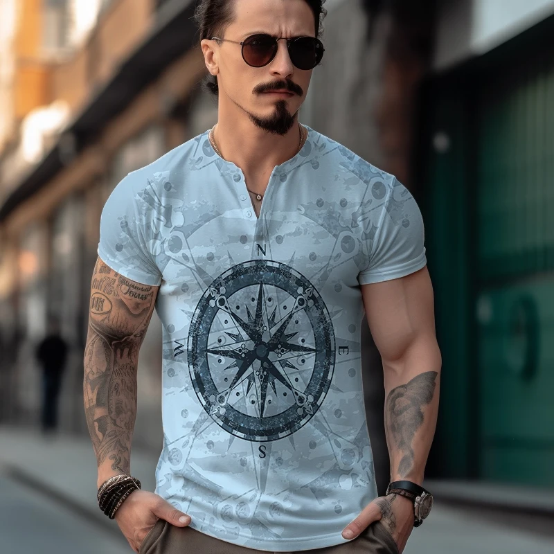 Мужская футболка с 3D принтом компаса, Повседневная стильная мужская футболка, модная трендовая Мужская футболка, летняя новая Высококачественная Мужская футболка