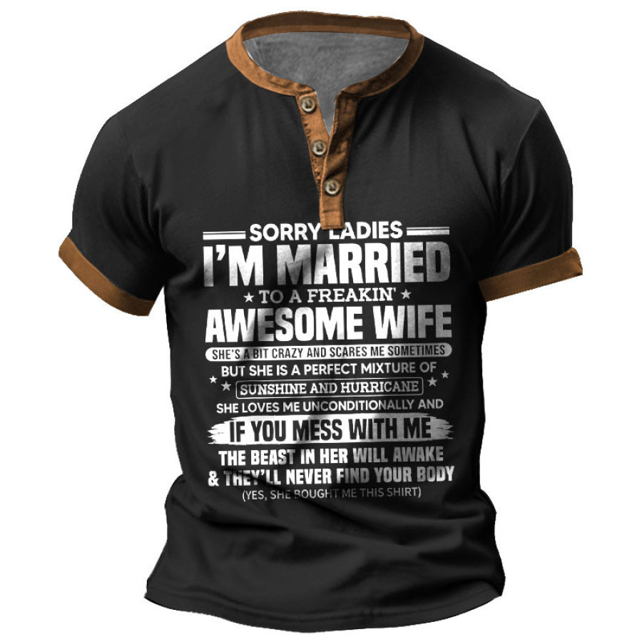 t-shirts,мужская футболка henley извините дамы я женат на чертовски потрясающей жене летние повседневные топы с короткими рукавами и цветными блоками