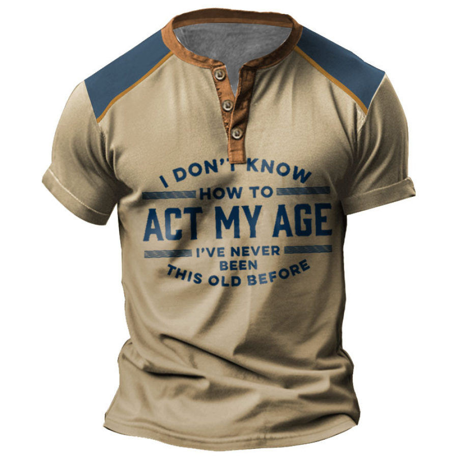 Мужская футболка Henley «Я не знаю как вести себя» Мой возраст «Я никогда не был таким старым» Летние повседневные топы с цветными блоками