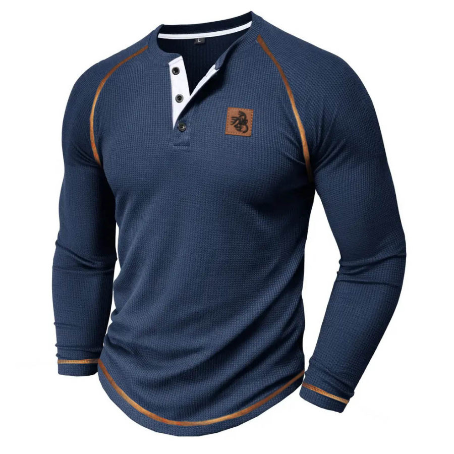 Мужская футболка Henley винтажные топы с длинными рукавами контрастного цвета с вафельным оленем на открытом воздухе