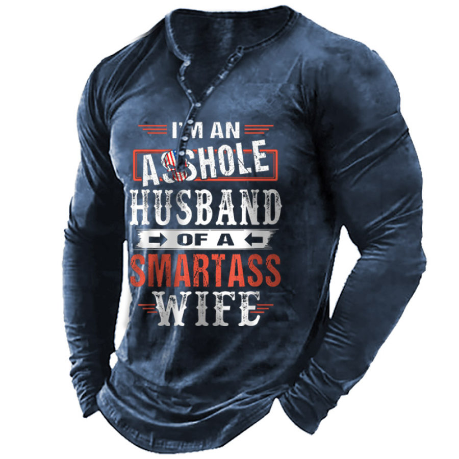 t-shirts,мужская футболка henley husband of a smartass wife с длинными рукавами винтажные повседневные топы