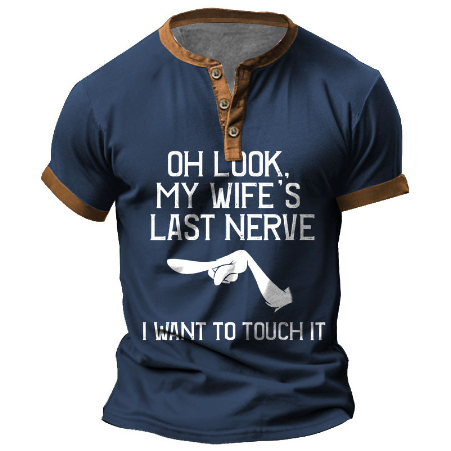 t-shirts,мужская футболка henley oh look my wife's last nerve i want to touch it винтажные летние повседневные топы с цветными блоками