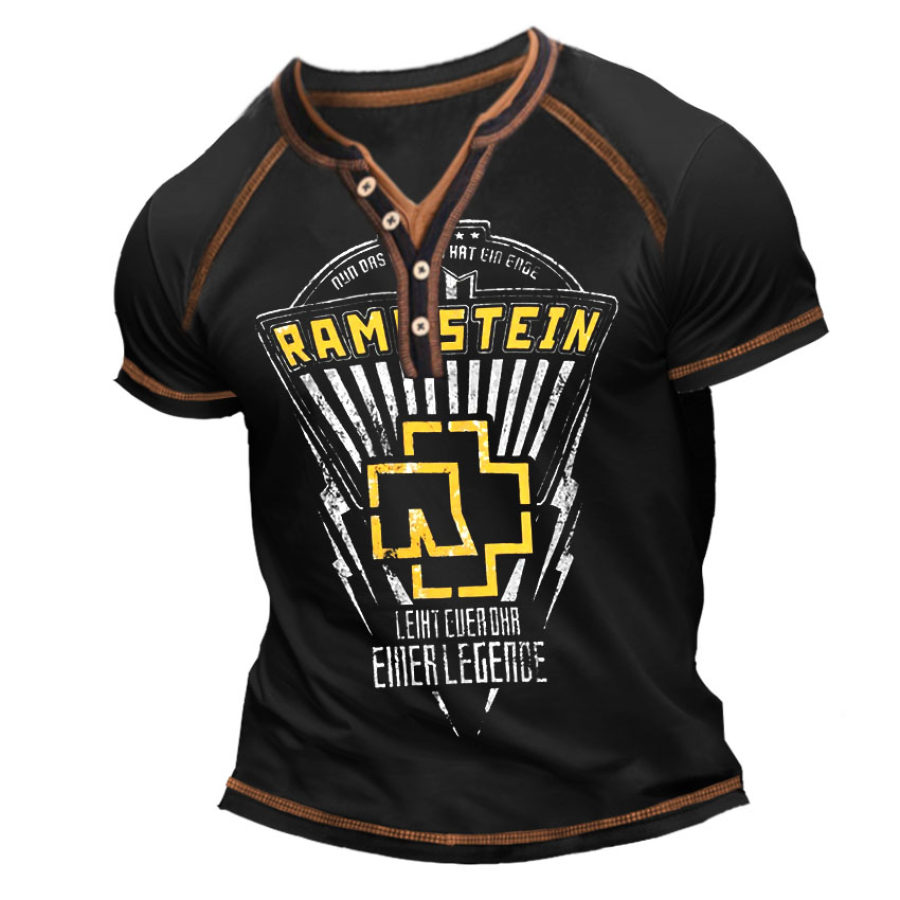 t-shirts,мужская футболка henley rammstein rock band с коротким рукавом в винтажном стиле с цветными блоками летние повседневные топы