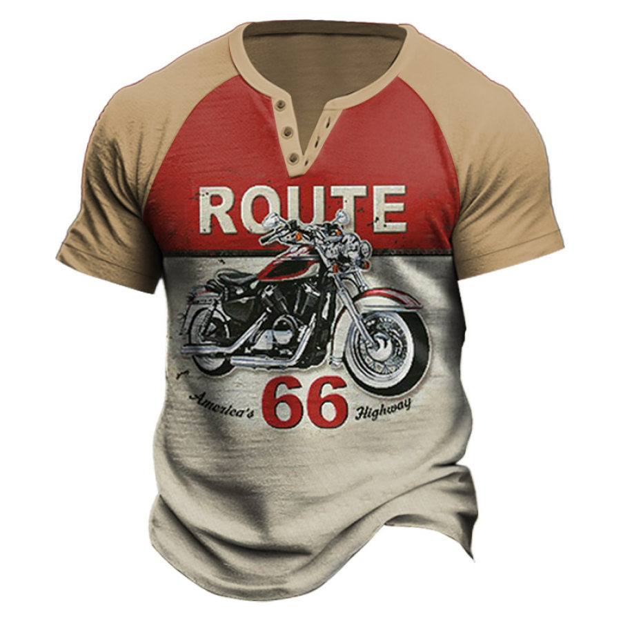 t-shirts,мужская футболка henley route 66 с принтом контрастного цвета на открытом воздухе с короткими рукавами летние повседневные топы