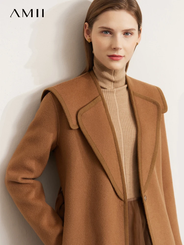 AMII Minimalism 100% Wool Coat Women 2022 Winter Warm French Style Vintage Turn-down Collar Temperament Clothing Tops 12270569