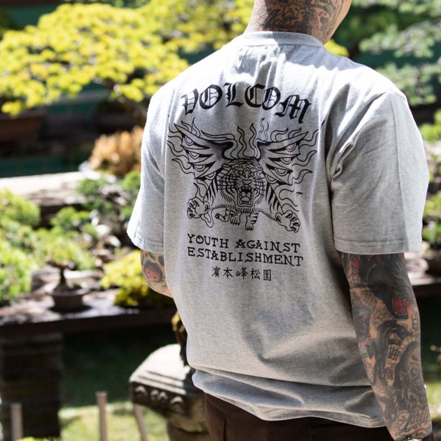 Мужская футболка Tokyo Tiger Volcom С принтом Повседневные Круглый вырез С короткими рукавами Топы