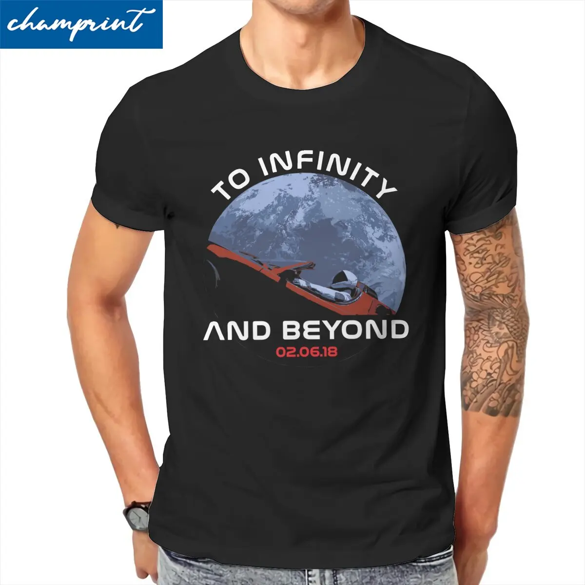 Мужская хлопковая футболка с коротким рукавом, круглым вырезом и принтом