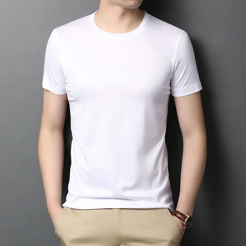 Мужская хлопковая футболка с коротким рукавом, круглым вырезом