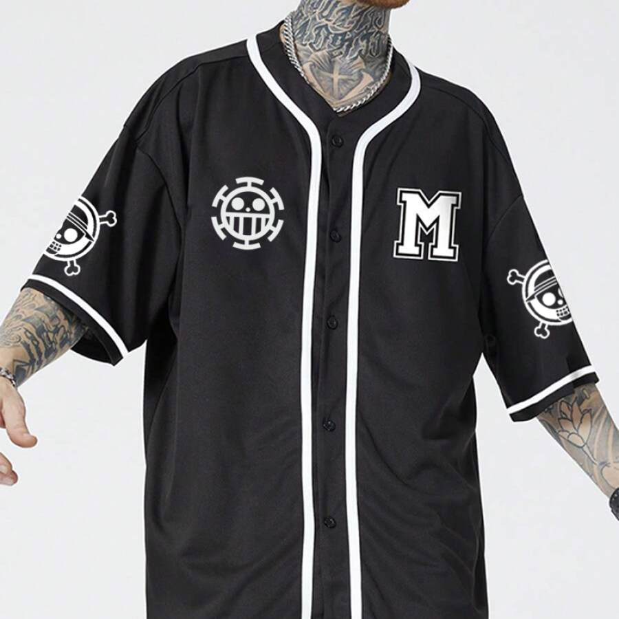 Мужская цельная рубашка с контрастной переплетной и буквенным рисунком в стиле аниме