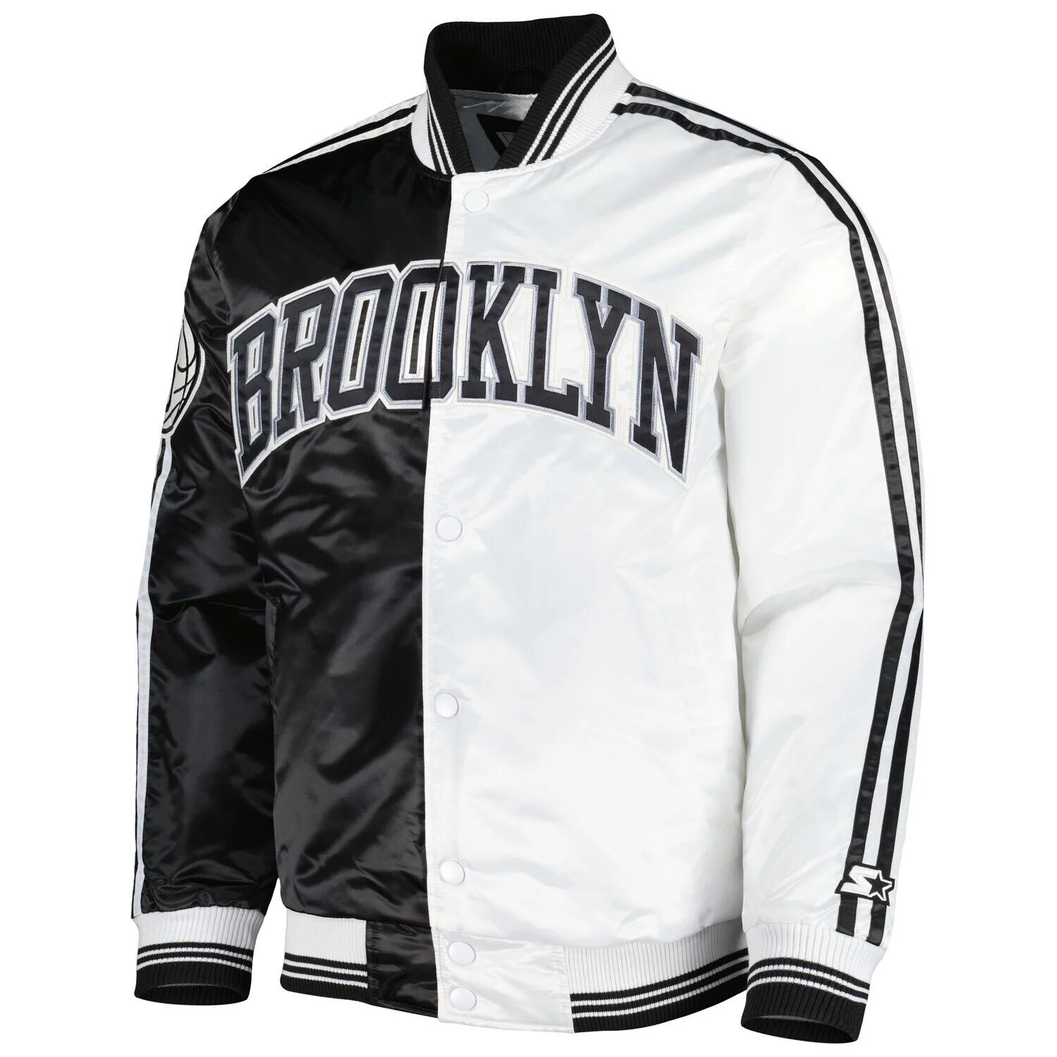 Мужская черно-белая быстроразрывная атласная куртка Brooklyn Nets с кнопками на кнопках Brooklyn Nets Starter, Черный, Мужская черно-белая быстроразрывная атласная куртка Brooklyn Nets с кнопками на кнопках Brooklyn Nets Starter