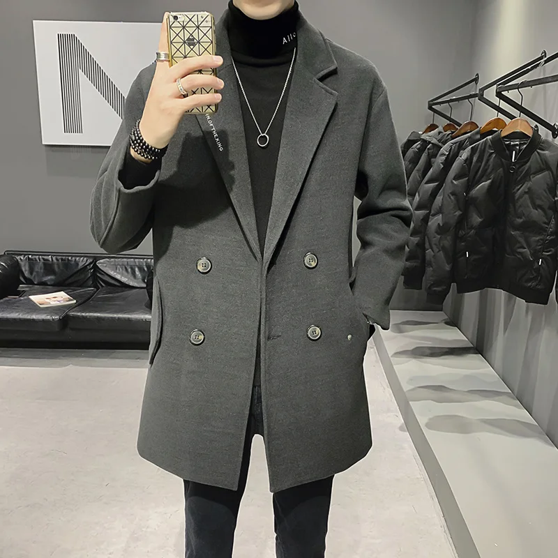 Мужская шерстяная куртка с вышивкой, однотонная двубортная куртка в британском стиле, Повседневный плащ для осени