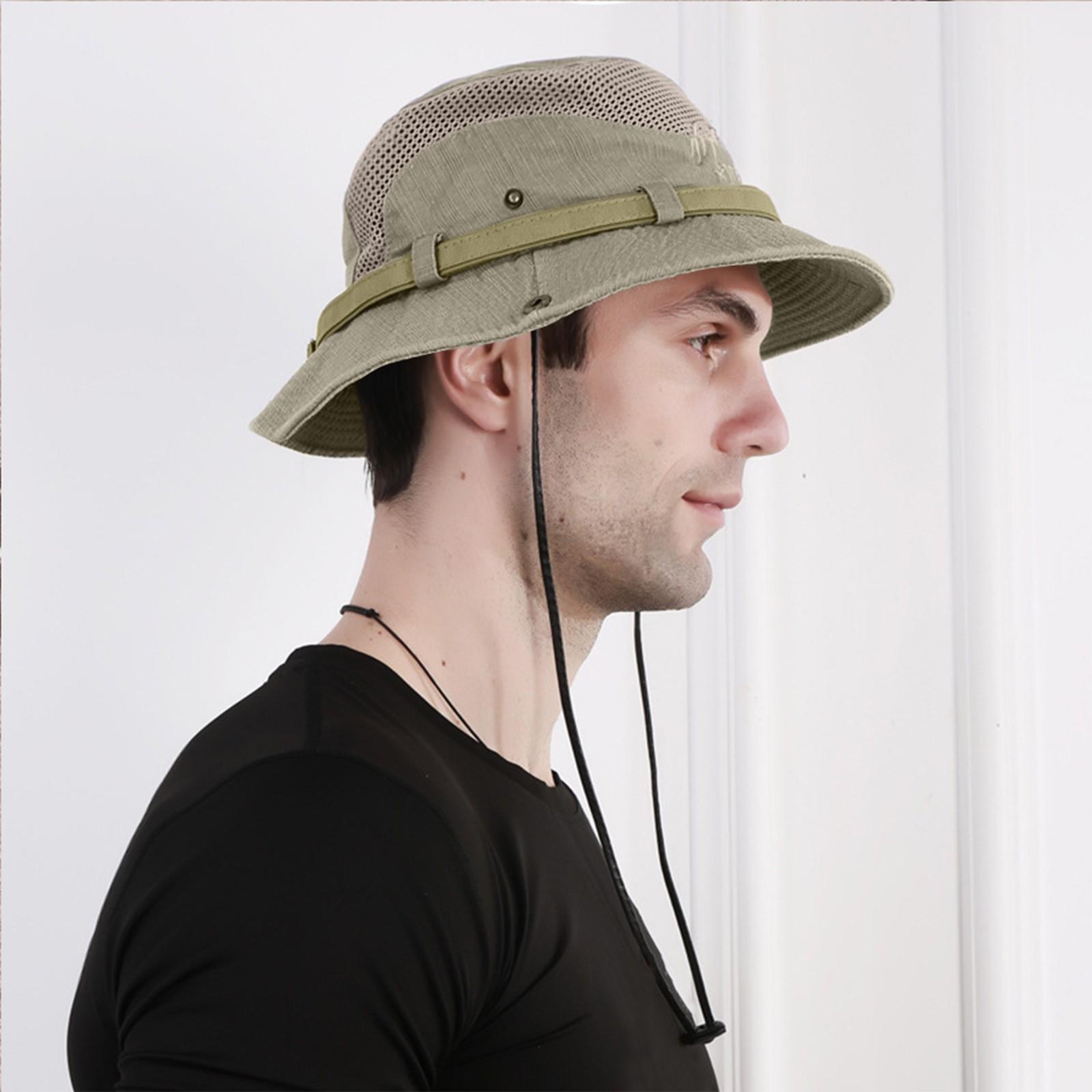 Мужская шляпа-ведро для рыбалки, походная шляпа, уличная шляпа от солнца, хлопковая сетчатая шляпа One Size хаки