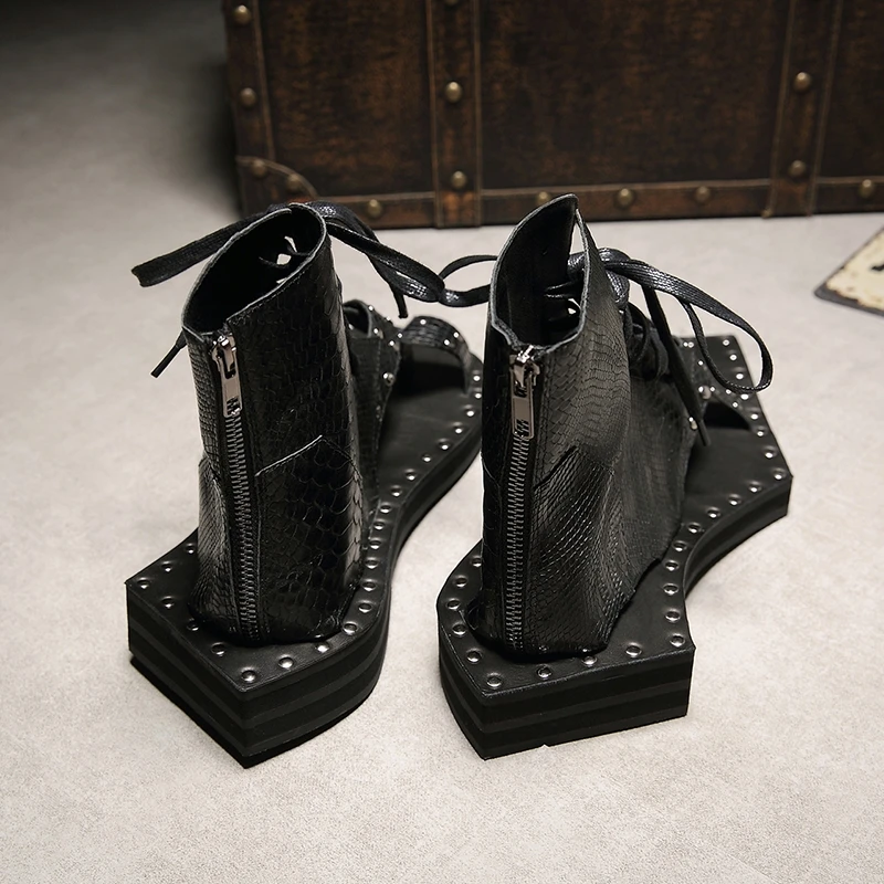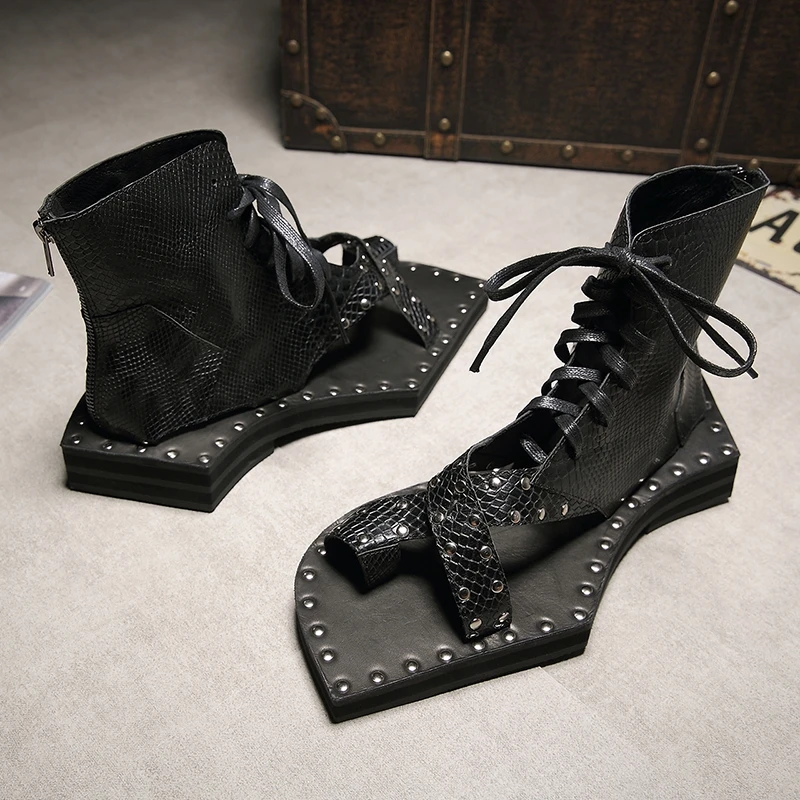 Мужские Винтажные сандалии-гладиаторы из натуральной кожи со змеиной кожей