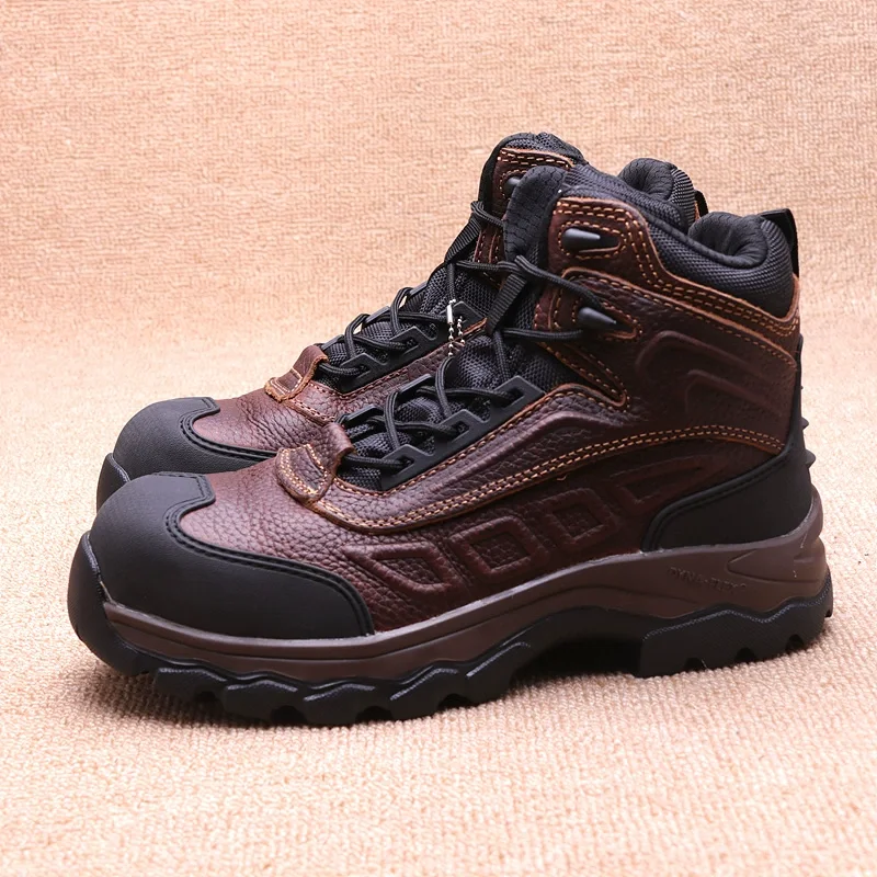 Мужские Нескользящие рабочие ботинки из натуральной кожи с пластиковым стальным носком, мужские Нескользящие и маслостойкие ботинки для трекинга