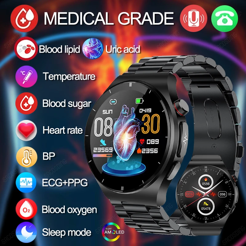 Мужские Смарт-часы с измерением уровня сахара в крови и Пульсометром