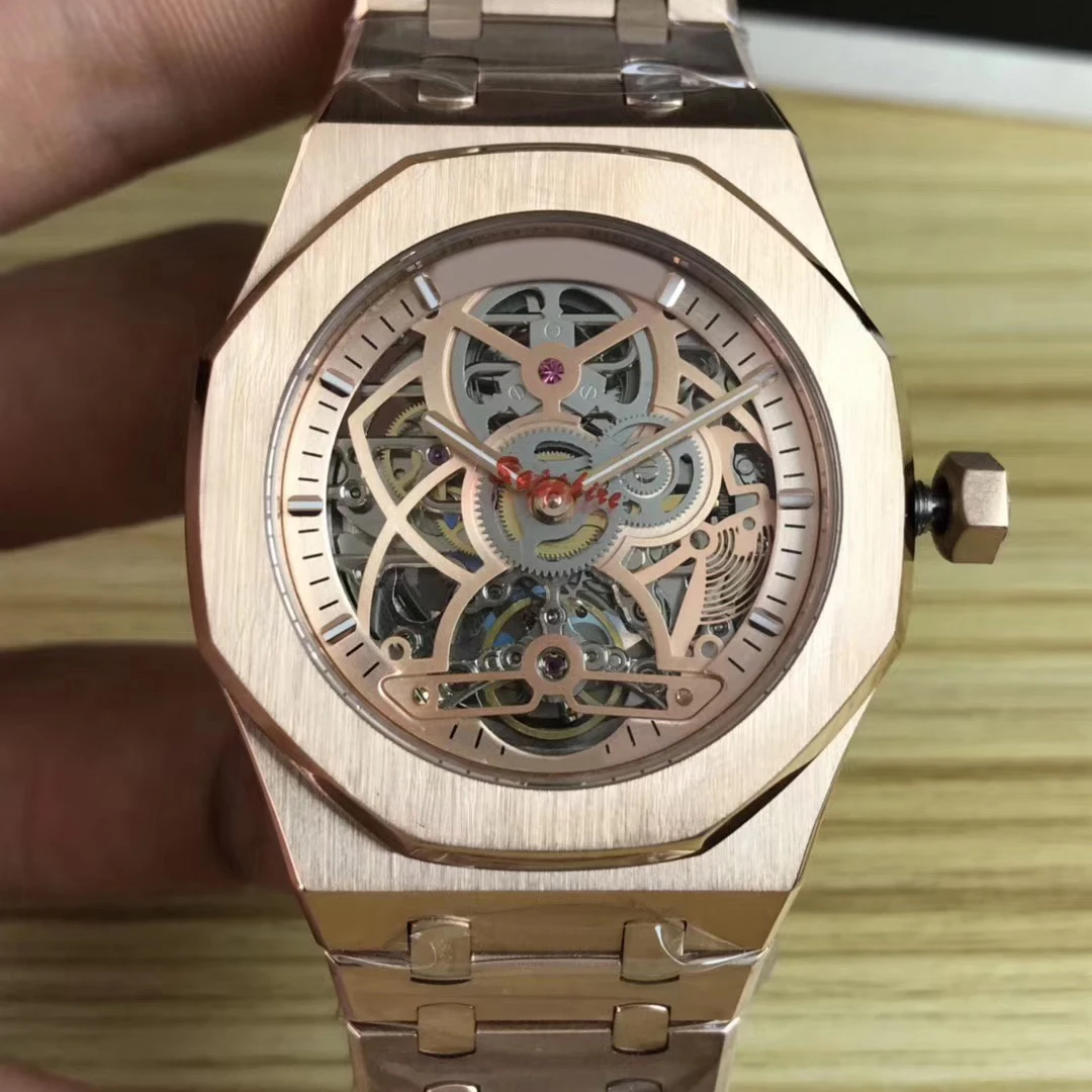 Мужские автоматические механические часы-скелетоны из розового золота Tourbillion