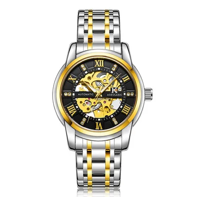 Мужские автоматические механические часы со стальным ремешком, деловые часы с ажурным маховиком