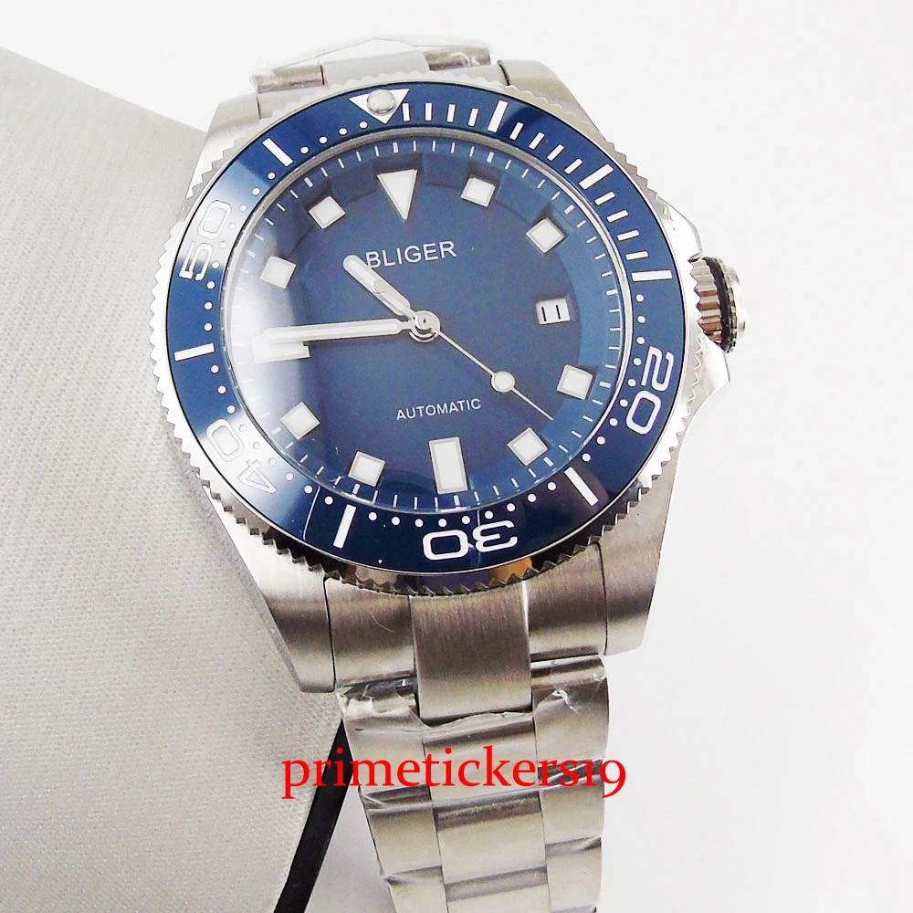 Мужские автоматические часы из нержавеющей стали с синим циферблатом, 43 мм