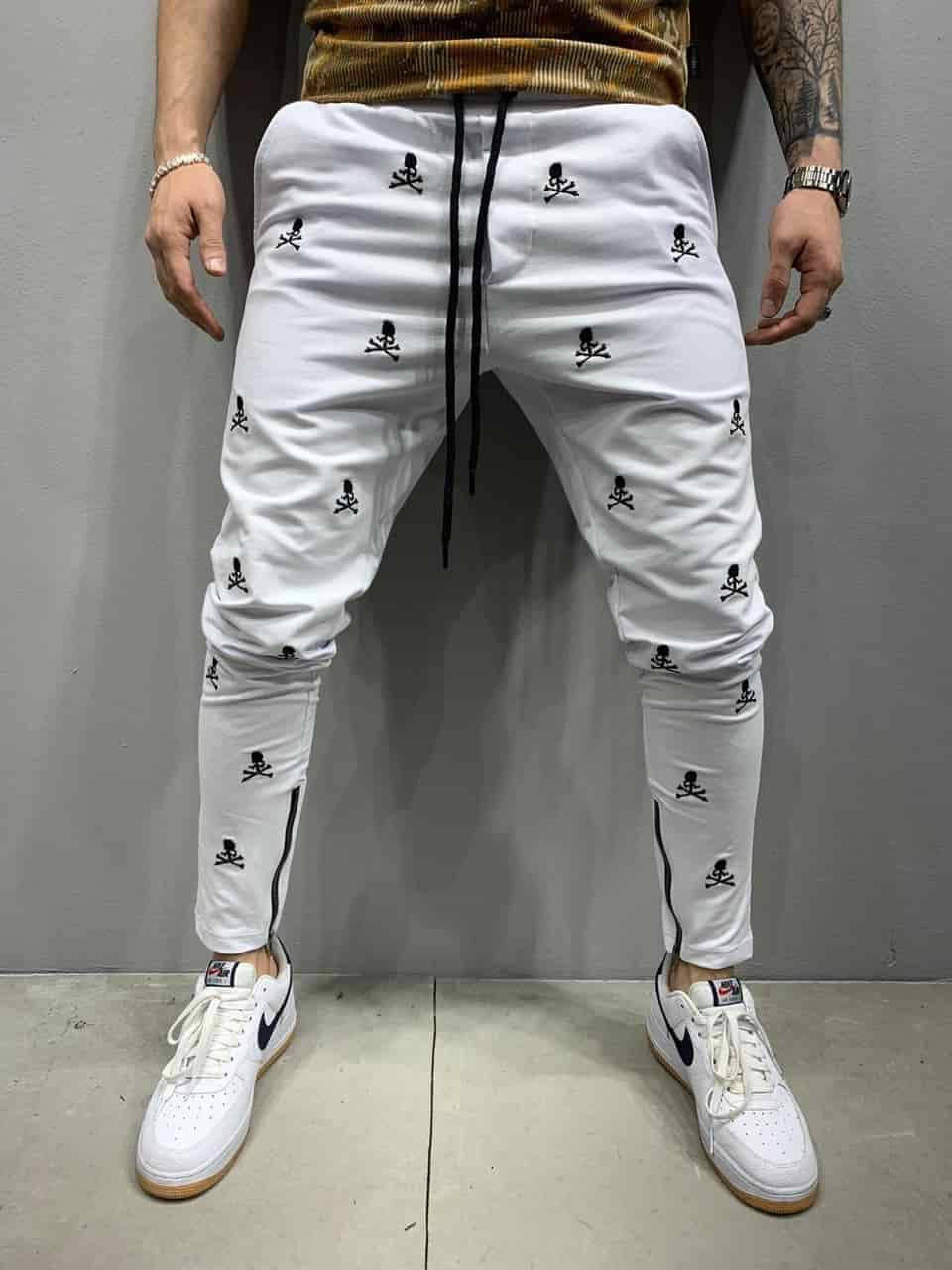 Мужские белые спортивные штаны с принтом черепа, Турция, Белый