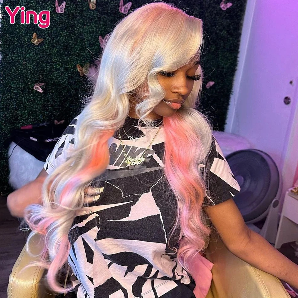 Silver Pink Colored 613 Frontal Wig 13x6 Body Wave Human Hair Wigs Pre Plucked 36 Inch 613 13x4 Lace Front Wigs Human Hair 200%