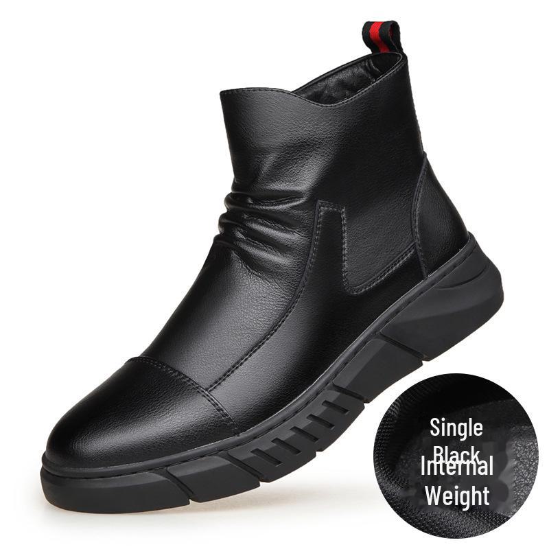 Мужские ботинки Martin из натуральной кожи: Модные, удобные, с боковой молнией, толстая подошва, плюс бархат, универсальные, повседневный дизайн без застежек. 39