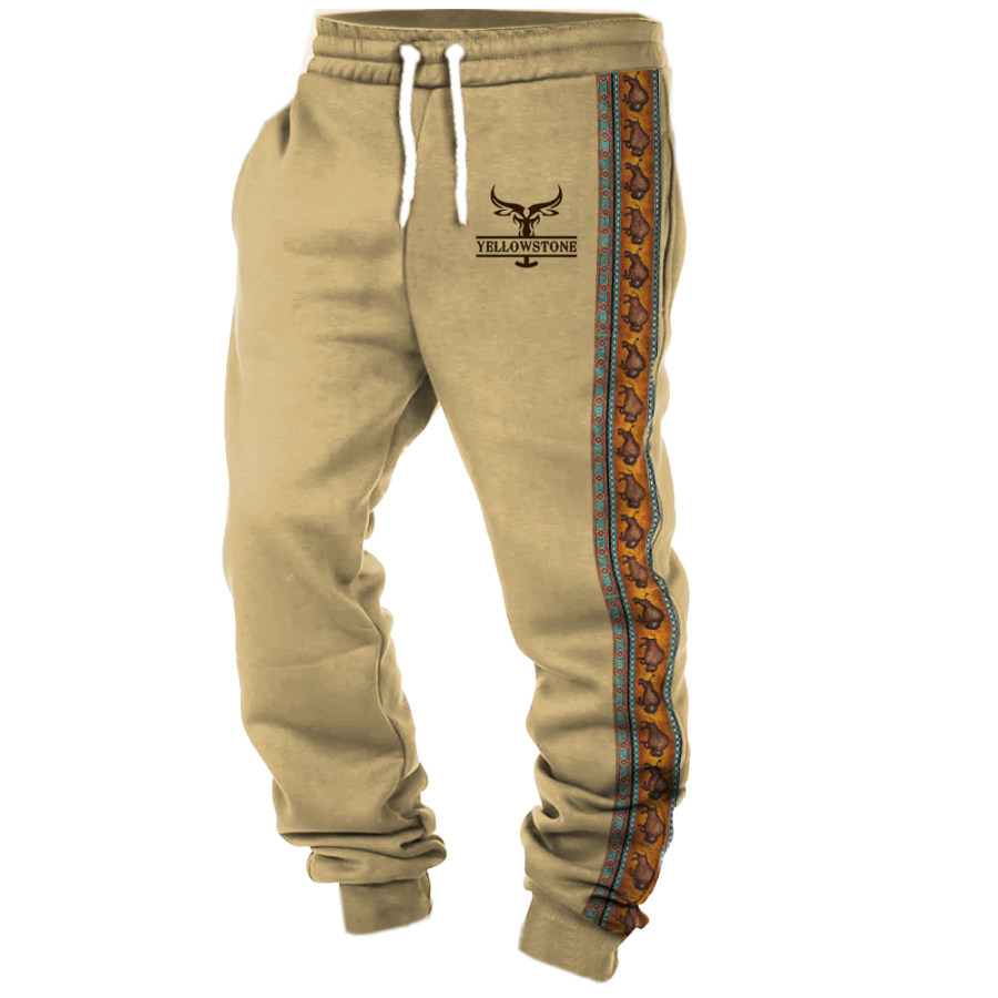 pants,мужские винтажные повседневные брюки с эластичной резинкой на талии с принтом в стиле вестерн йеллоустоун