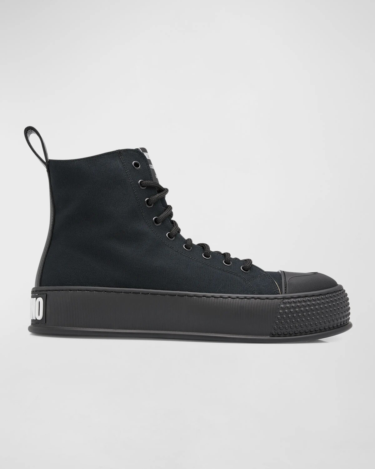 Мужские высокие кеды из парусины с шипами и полосками Moschino, цвет Black