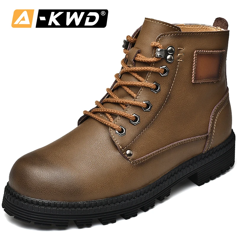 Мужские высокие кроссовки, уличная рабочая обувь, кожаные, в стиле ретро, зима