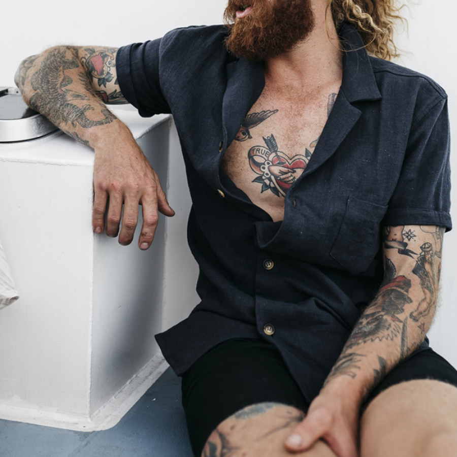 t-shirts,мужские гавайские хлопковые льняные рубашки с глубокими карманами темно-синего цвета удобные дышащие мягкие пляжные рубашки с коротким рукавом