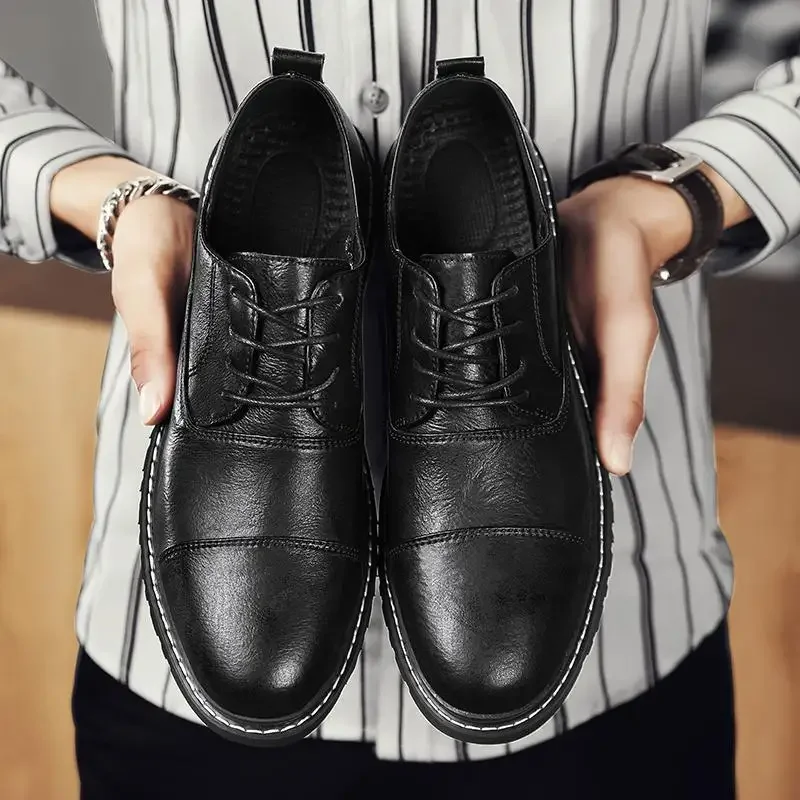 Мужские деловые кожаные туфли, новинка весны 2023, деловые повседневные туфли из натуральной кожи с большой головой в британском стиле, мужские костюмные маленькие кожаные туфли