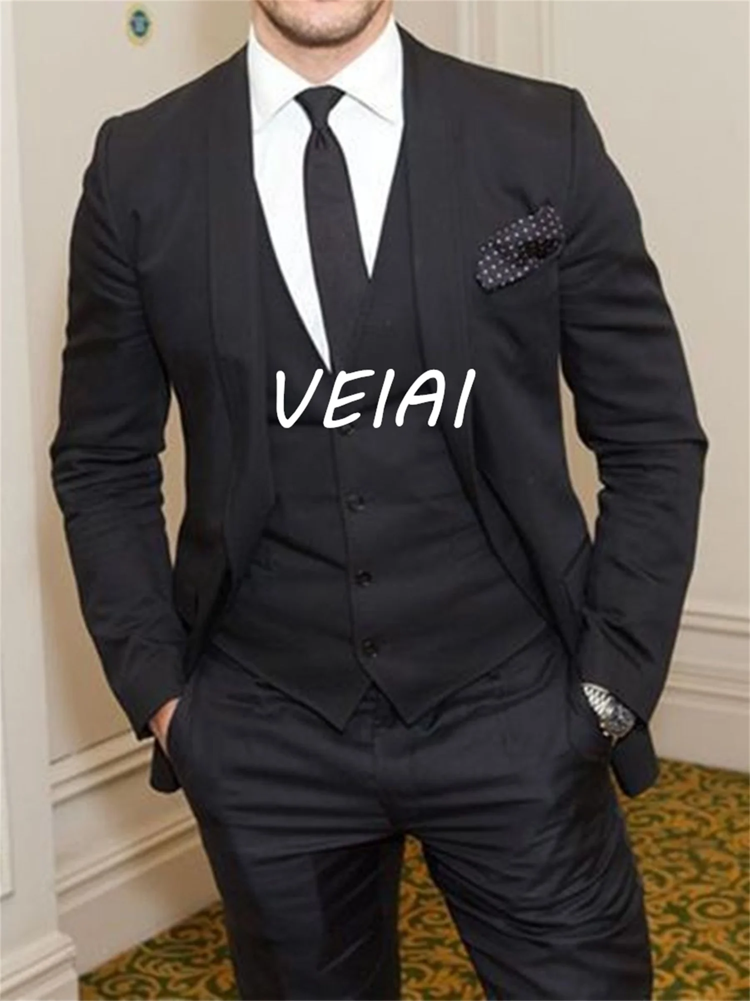 Мужские деловые костюмы, черные бриджи, официальный стиль 2023, смокинг для жениха на заказ, пиджак + брюки + жилет, 3 шт.