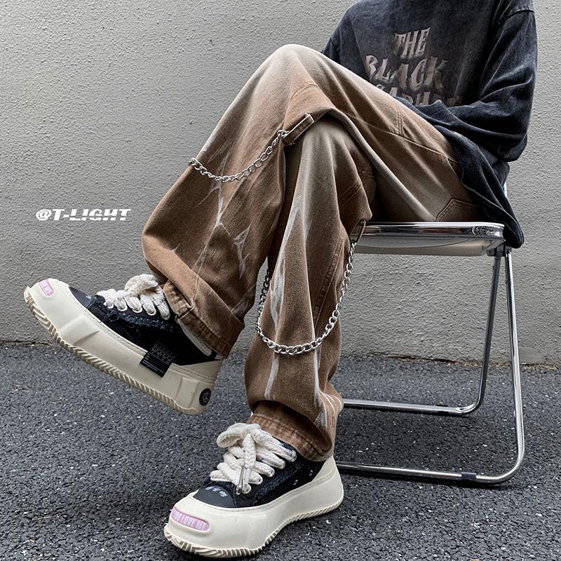 Мужские джинсы прямого кроя с узором «тай-дай» — модные, утолщенные, стильные и удобные для улицы широкие брюки для осени и зимы. XL