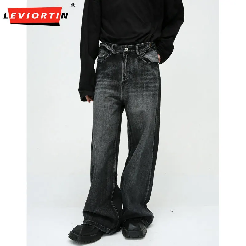 Мужские джинсы с широкими штанинами, свободные прямые джинсовые брюки в стиле ретро, осень 2024