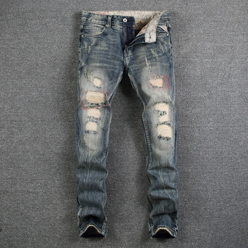 Мужские джинсы High Street с вышивкой, ностальгические потертые брюки, джинсовые брюки, мужские джинсы y2k