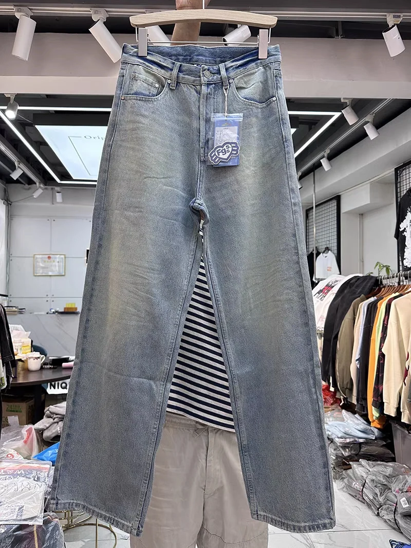 Мужские и женские джинсы большого размера, с прямыми пуговицами