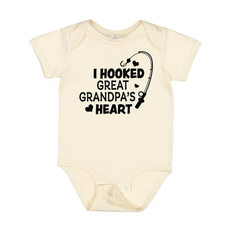 Inktastic I Hooked Great Grandpa s Heart with Fishing Rod Gift Baby Boy or Baby Girl Bodysuit