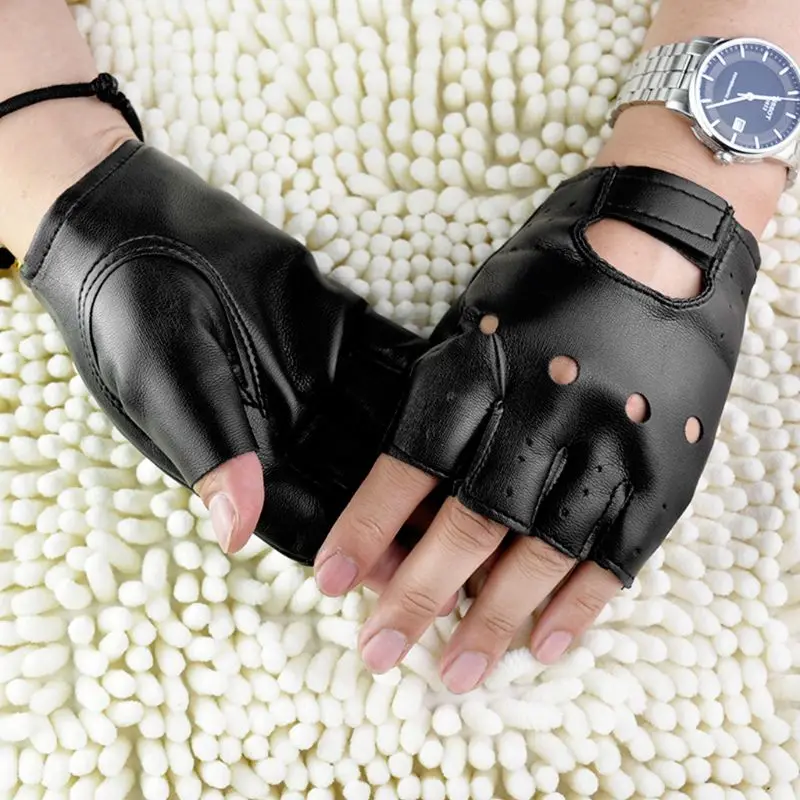 Мужские и женские перчатки из искусственной кожи без пальцев, крутые черные варежки на запястье