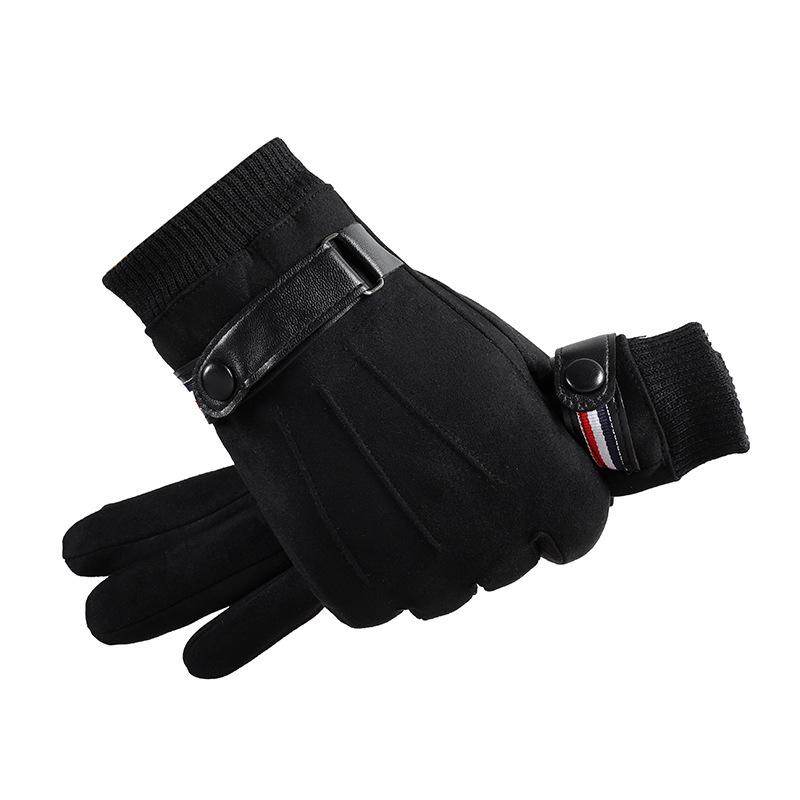Мужские замшевые перчатки для сенсорных экранов - Теплый бархат, для езды на велосипеде и вождения на открытом воздухе, осень/зима One Size чёрный