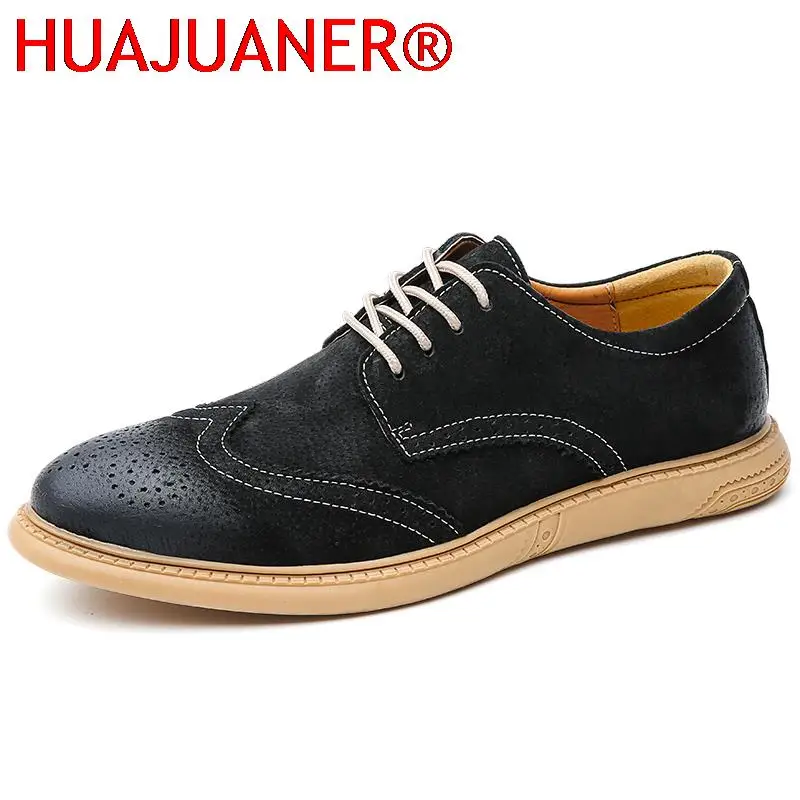 Мужские замшевые туфли 2022, повседневные Кожаные броги, мужские Нескользящие деловые офисные официальные туфли оксфорды, обувь для отдыха, п...