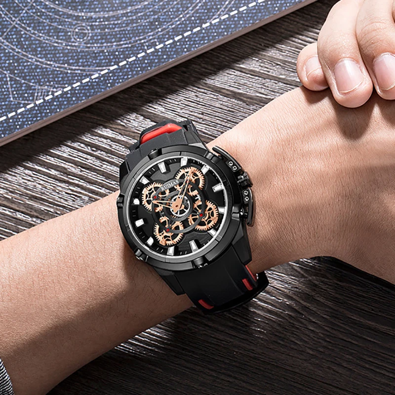 Мужские зеркальные Спортивные часы RUIMAS Hardlex, водонепроницаемые Оригинальные кварцевые мужские наручные часы, светящиеся